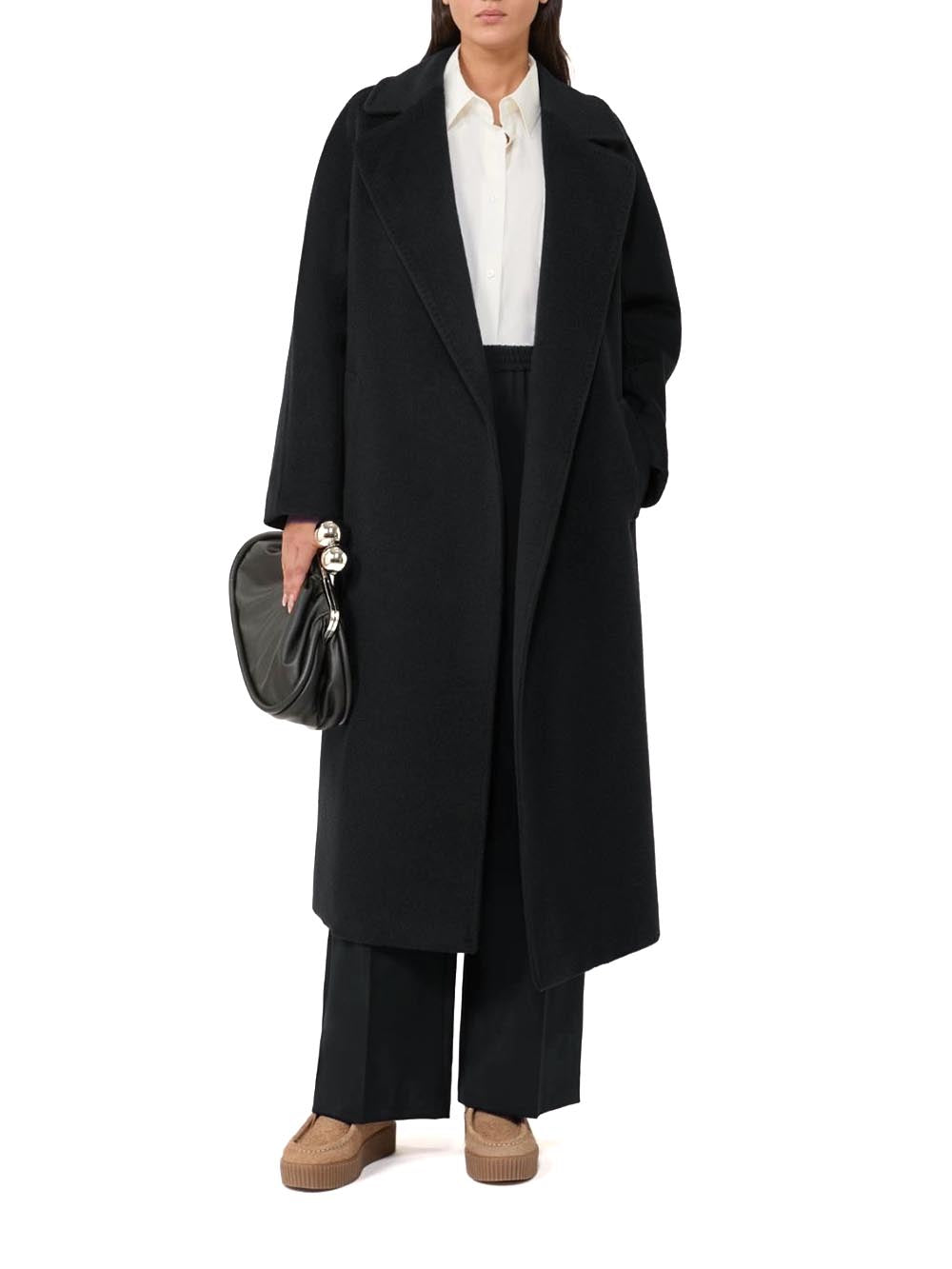 Per un look impeccabile durante la stagione fredda, abbina questo cappotto a un paio di stivali alti e una sciarpa in cashmere. Per un outfit sofisticato da ufficio, indossalo sopra un abito a tubino e completa con accessori minimalisti. Perfetto anche per il tempo libero, si accompagna bene a jeans slim fit e maglioni a collo alto. Le keyword di ricerca che potrebbero attrarre il tuo pubblico includono "cappotto lungo elegante", "cappotto in lana e alpaca", "cappotto invernale nero".