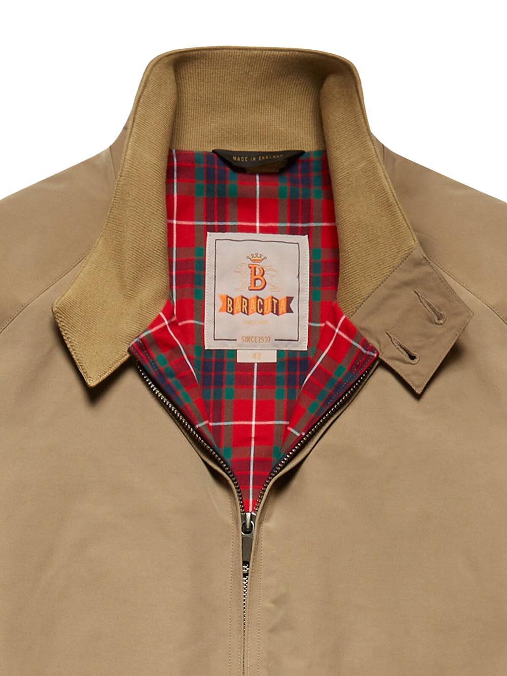 - Realizzato in Baracuta Cloth in misto cotone con trattamento WR anti goccia