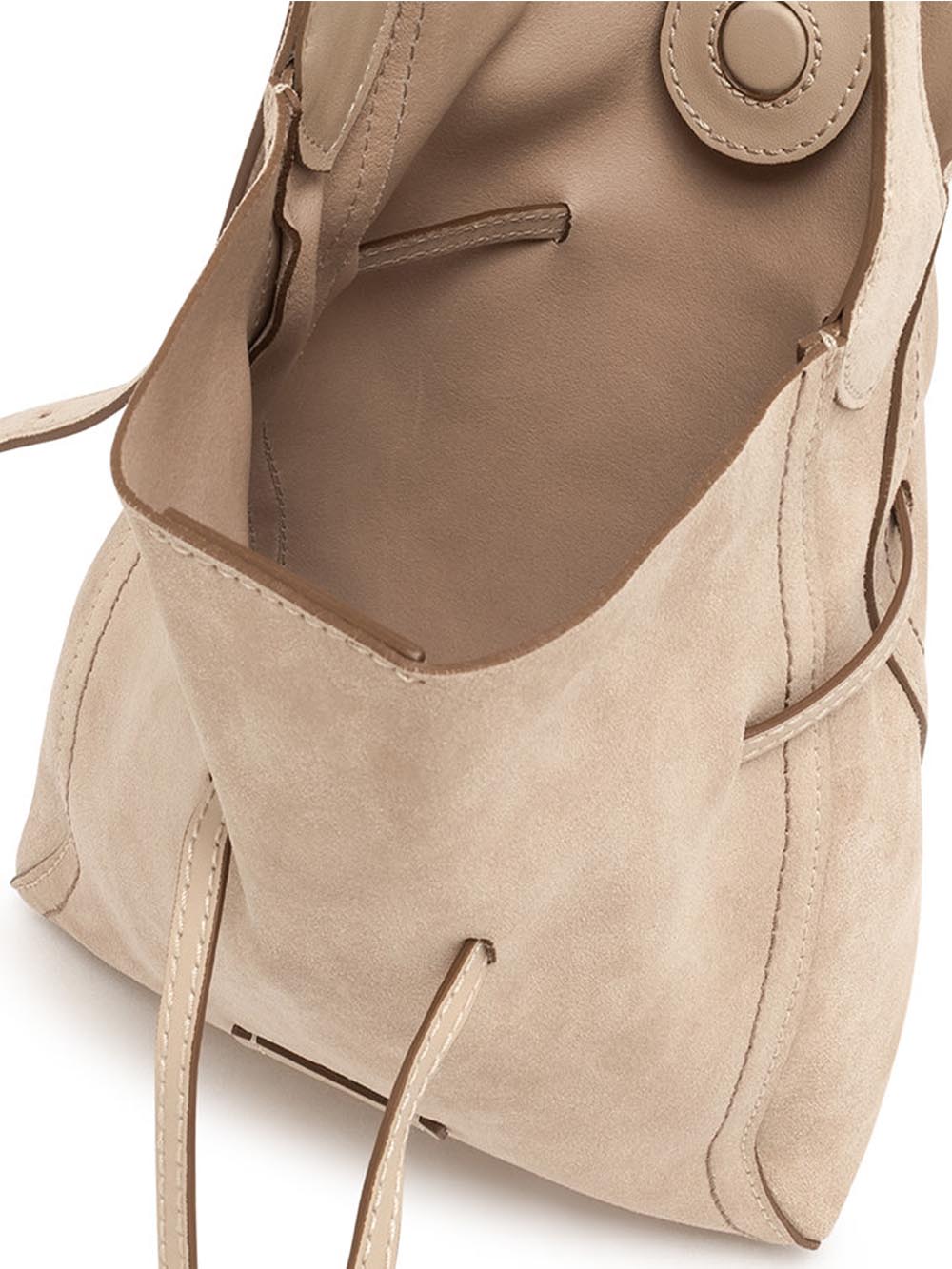- Realizzato in pelle scamosciata con impunture a contrasto.